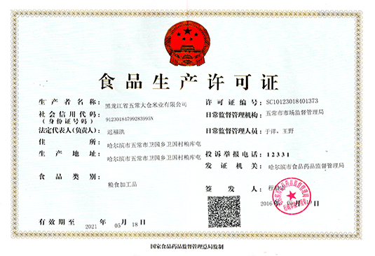 2006年 2007年 2009年 2011年 2012年 2014年 2016年 2018年 2006年選址五常稻米的核心產(chǎn)區(qū),五常政府招商引資 營業(yè)執(zhí)照 2007年公司取得了全國工業(yè)產(chǎn)品生產(chǎn)許可證 2009年被北京五洲恒通認(rèn)證有限公司認(rèn)證為有機(jī)大米并頒發(fā)有機(jī)大米認(rèn)證證書 2009年被黑龍江省糧食行業(yè)協(xié)會(huì)授予“省級(jí)放心米” 2011年被授予“第十一屆中國國際糧油產(chǎn)品展覽會(huì)金獎(jiǎng)”的稱號(hào) 2014年參加第十五屆中國綠色食品博覽會(huì),隆福源五常稻花香榮獲金獎(jiǎng)。 2016年通過ISO9001國際質(zhì)量管理體系認(rèn)證 2018年有機(jī)產(chǎn)品認(rèn)證證書