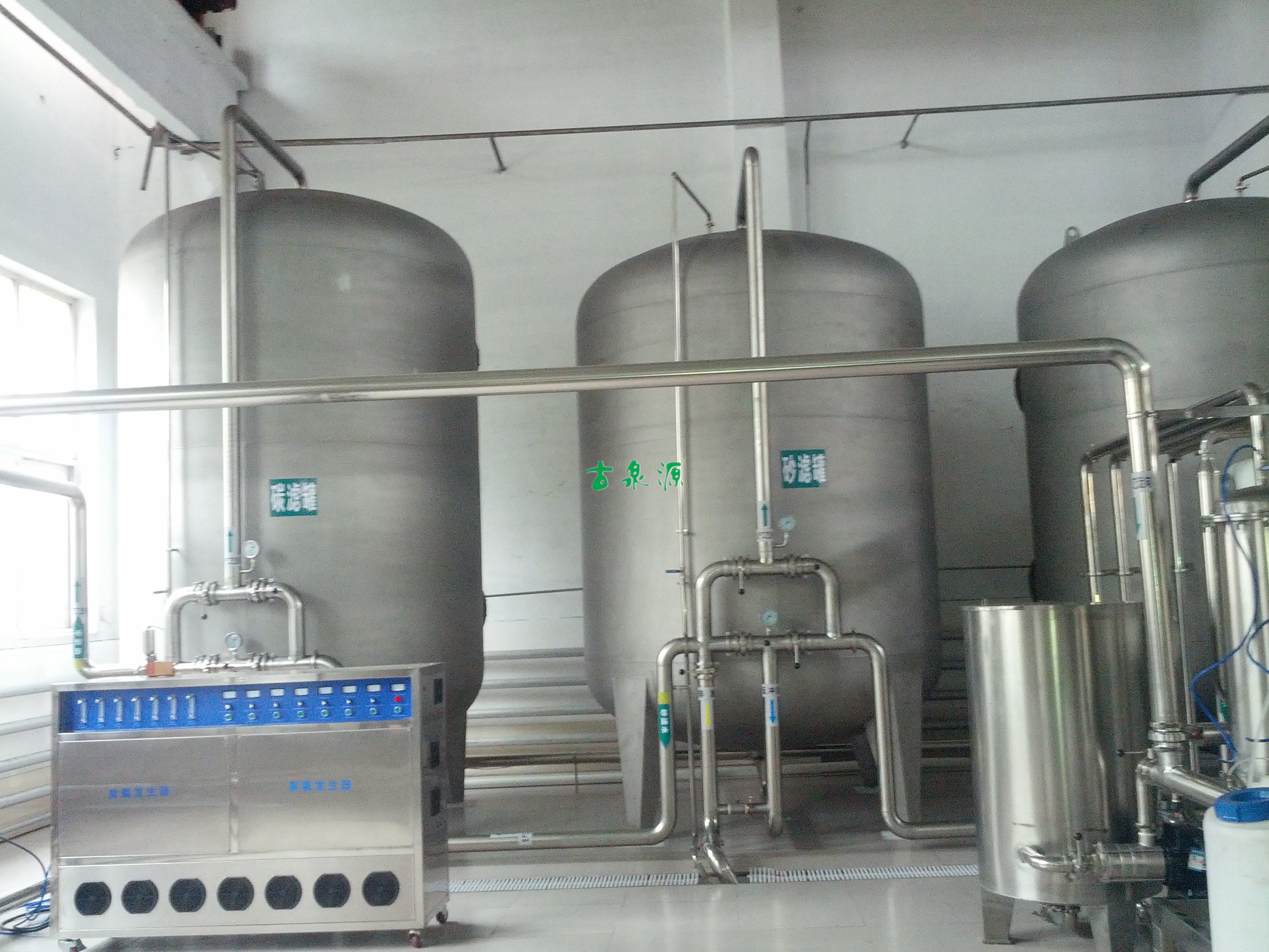 該公司為某大型桶裝水廠的純凈水設備,出水要達到國家桶裝水的標準。我們給設計了反滲透凈水方案,前期預處理為錳沙和活性炭,并且為反滲透膜配備了加藥(阻垢劑)系統(tǒng),以保護膜并延長其使用壽命。自動控制方面采用了西門子PLC并配備了人際界面進行操作。整套設備的運行使用方面無需任何手動操作。真正實現(xiàn)了量產(chǎn)飲用水的目的。