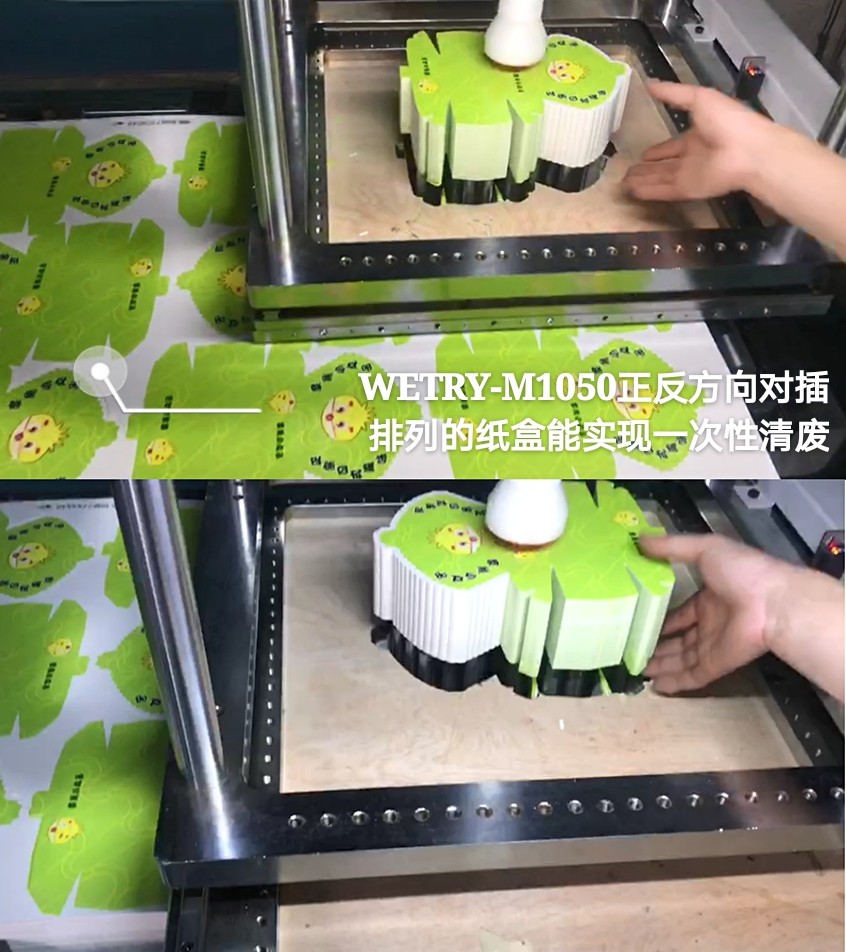 A1: Our machines, Super Single-Head Waste Strippers, though single-head, are able to strip the waste of boxes ranged in opposite directions in one time, as well as of the boxes with six different sizes and shapes which usually require six-head machines. This is our exclusive and innovative patented invention (ZL2015103048859)!