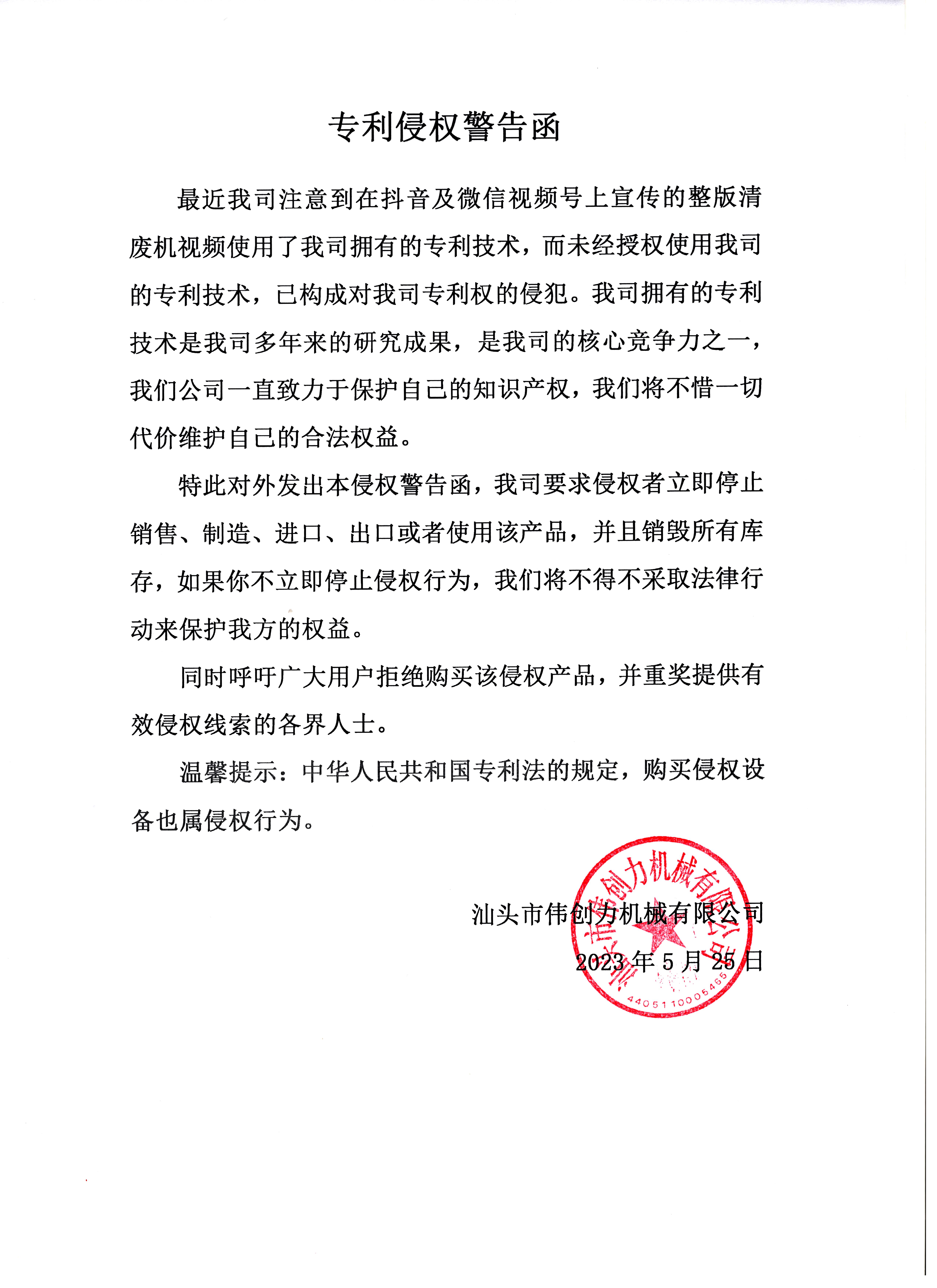 專利侵權(quán)警告